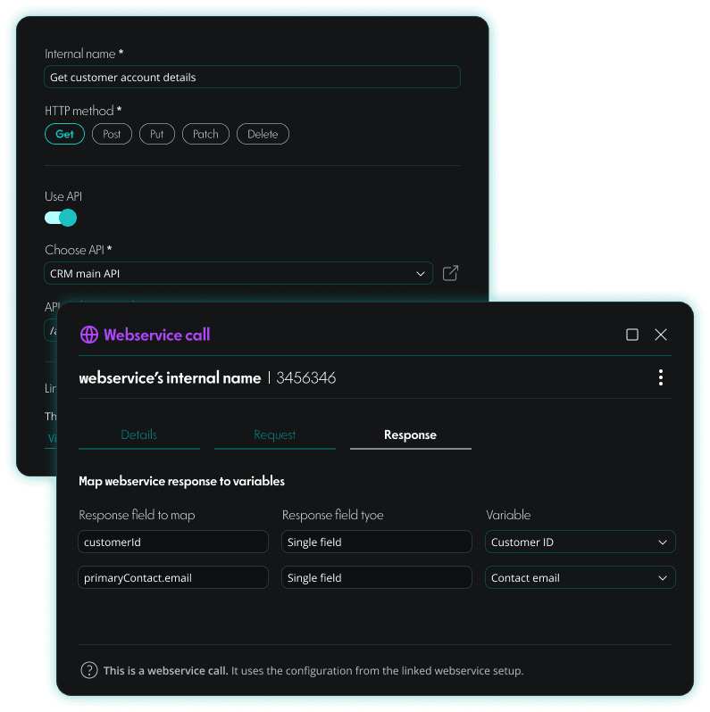 Directly link your workflows to the systems you already use like CRMs, ERPs or operational systems